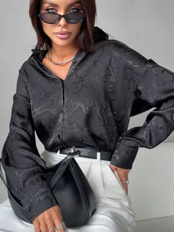 Атласная блузка рубашка оверсайз шелковая нарядная офисная