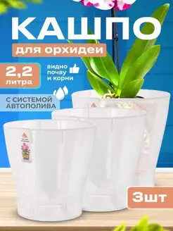 Горшок для орхидеи Лея прозрачный с автополивом 2,2л - 3 шт