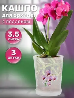 Горшок для орхидеи прозрачный 3,5 литра с поддоном - 3 штуки