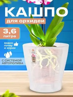 Горшок для орхидеи Лея прозрачный с автополивом 3,6л - 1 шт