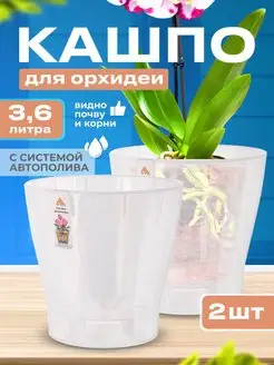 Горшок для орхиде Лея прозрачный с автополивом 3,6л - 2 шт
