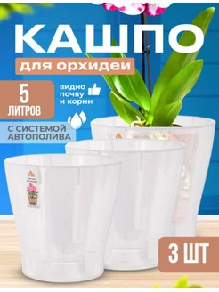 Горшок для орхидеи Лея прозрачный с автополивом 5л - 3 шт