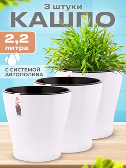 Горшок для цветов Лея белый с автополивом 3,6 л - 3 штуки