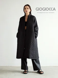 Пальто стеганое на молнии осень-зима оверсайз длинный