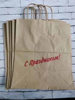 Крафт пакет "с Праздником" 37х19х32 5шт