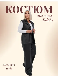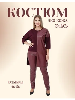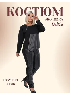 Костюм-двойка из эко-кожи и трикотажа с декоративной молнией