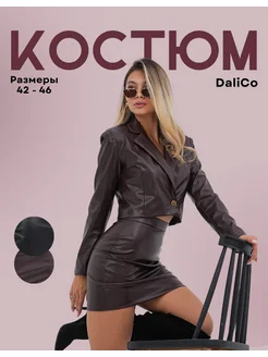 Костюм двойка из эко-кожи и трикотажа с декоративной молнией