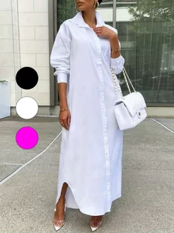 Рубашка платье нежно розовое оверсайз длинная с карманами