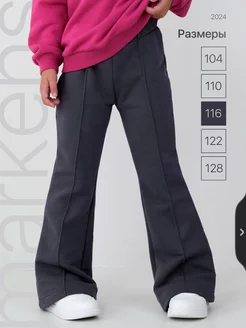 Штаны клеш на резинке трикотажные без начеса в стиле Зары