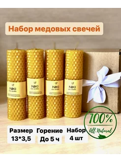 Набор свечей из пчелиного воска (вощина), 4 шт