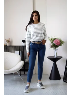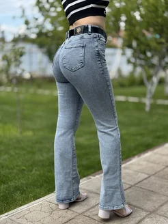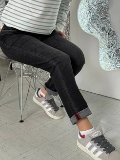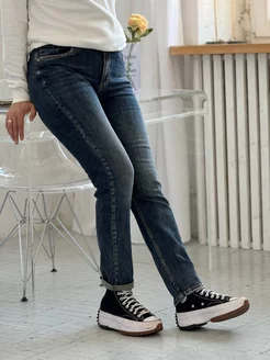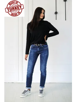 Джинсы бойфренд синие с коричневым тинтом большой размер