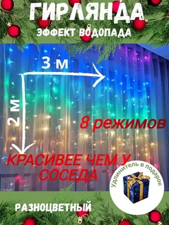 Светодиодная гирлянда Водопад 3*2 разноцветный, мультицвет