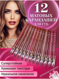 Набор карандашей для губ с точилкой 12 шт