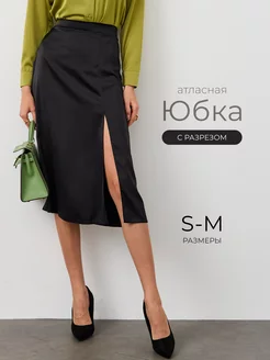 Атласная юбка миди с разрезом
