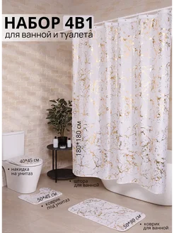 Штора и коврики в ванную и туалет комплект 4 в 1