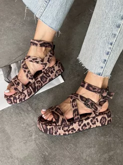 Натуральная кожа Босоножки женские на платформе леопардовые