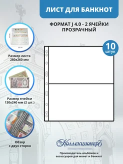 Лист для банкнот, 2 ячейки, 260*280 мм, 10 шт