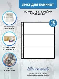 Лист для банкнот, 3 ячейки, 260*280 мм, 10 шт