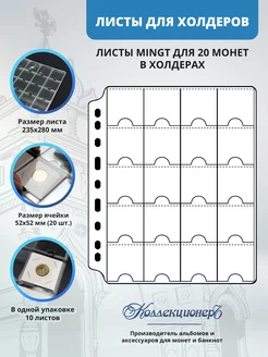 Листы для 20 монет в холдерах