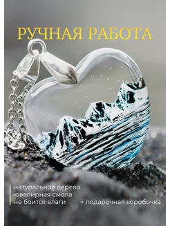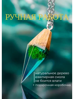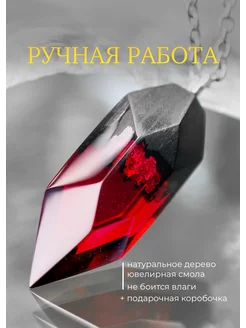 Подвеска кристалл из черного дерева и смолы Рубиновый Космос