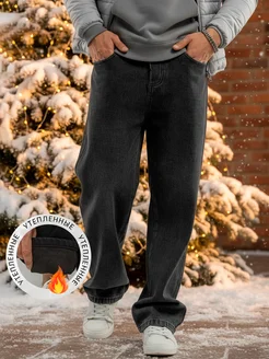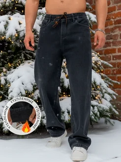 Зимние утепленные с начесом широкие оверсайз багги джинсы