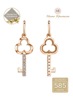 Подвеска золотая ключик женская 585 проба с фианитами