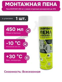 Пена монтажная всесезонная,бытовая с трубочкой 450мл