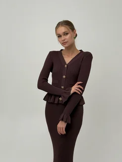 Костюм трикотажный двойка с платьем и джемпером вязаный