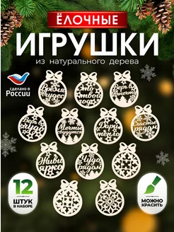 Набор новогодних деревянных игрушек на елку, сувениры