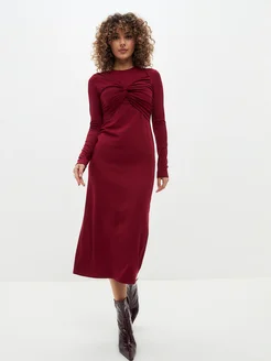 Платье миди нарядное с драпировкой
