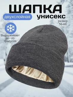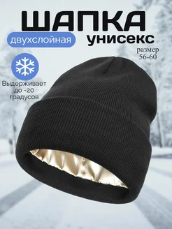 Шапка зимняя с подворотом двухслойная демисезонная бесшовная