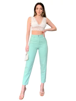 Джинсы скинни с высокой посадкой мом укороченные