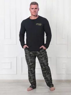 Пижама с длинным рукавом и штанами домашний трикотаж хлопок