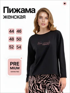 Пижама с длинным рукавом со штанами палаццо хлопок леопард