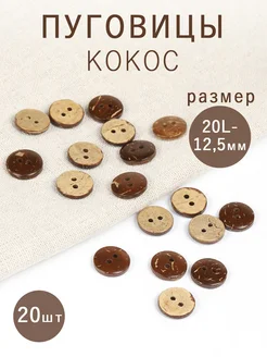 Пуговицы декоративные Кокос 12,5 мм 20 шт