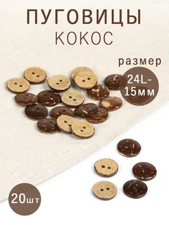 Пуговицы декоративные Кокос 15 мм 20 шт