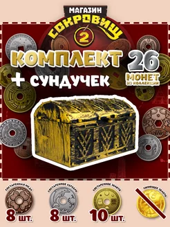 Магазин сокровищ 2 монеты 26 шт + сундук