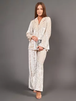 Пижама велюровая домашняя с брюками и рубашкой