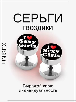 Серьги гвоздики круглые бижутерия штанги плаги фейк 2шт 8мм