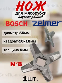 Нож для мясорубки двухсторонний №8 Zelmer, Bosch