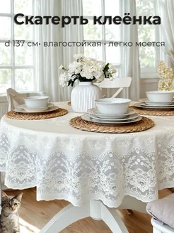 Скатерть клеенка водоотталкивающая кружевная круглая 137