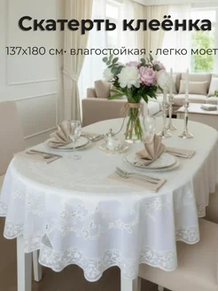 Скатерть клеенка на стол водоотталкивающая овальная 137х180