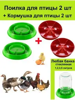 Поилка и Кормушка для птицы под стеклянную банку по 2 штуки
