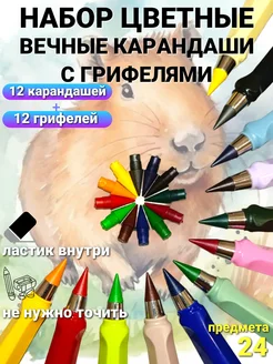 Карандаши вечные цветные набор + грифели 12 штук