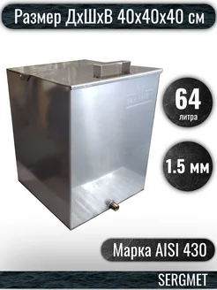 Бак для бани из нержавейки 65 л 1.5 мм AISI 430 40х40х40 см