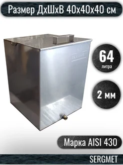 Бак для бани из нержавейки 65 л 2 мм AISI 430 40х40х40 см