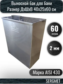Бак для бани из нержавейки 50 л 2 мм AISI 430 40х20х60 см