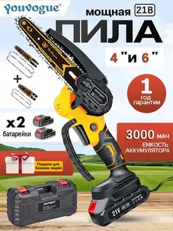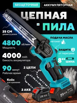 Пила аккумуляторная цепная 4‘’6‘’8" электропила садовая мини