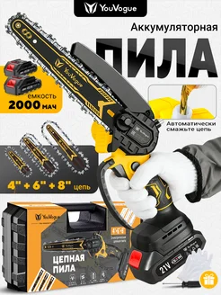 Пила аккумуляторная цепная 4+6+8 дюймов с 2 АКБ