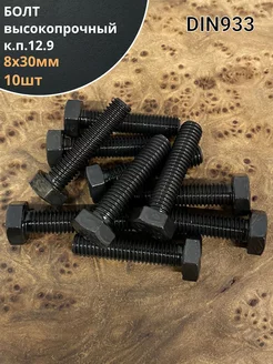 Болт высокопрочный 8х30 мм, DIN933, к.п.12.9 черный, 10шт